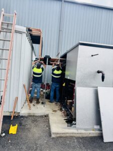 Our team is in process of retrofitting an aging Hussmann low‑temperature parallel compressor rack with a new Zero‑Zone outdoor parallel rack system installed on a new concrete pad. The project includes all new electrical feeds, system control circuits, and outdoor disconnects. We engineered and are in process of completing a full piping changeover for 10 freezer circuits and an outdoor remote condenser, along with converting all indoor coils to R448A refrigerant for improved efficiency and sustainability.